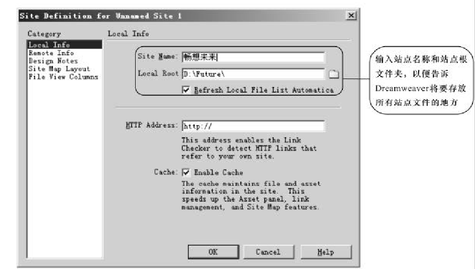 建立了本地站點(diǎn)文件夾后,接下來可以對(duì)本地站點(diǎn)進(jìn)行定義了。