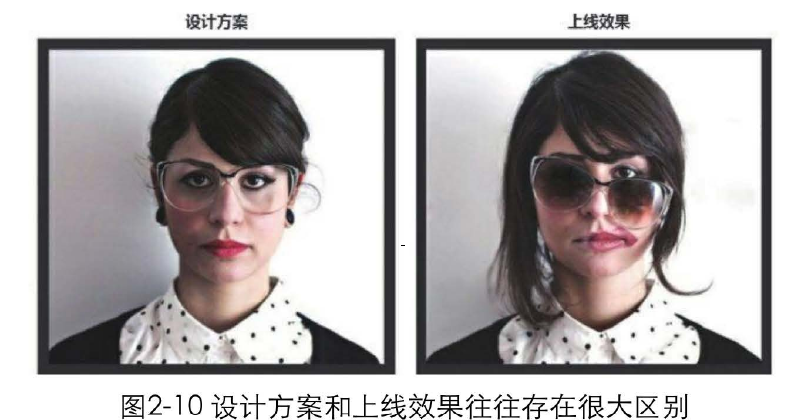 如果沒有設(shè)計(jì)師的細(xì)心跟進(jìn),那么實(shí)際上線的結(jié)果可能會(huì)和預(yù)期的有很大差別,就像下面這個(gè)可憐的女士一樣 (圖片來自微博,稍經(jīng)修改),如圖2-10所示。