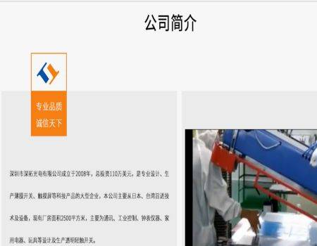 深圳市深拓光電有限公司成立於2008年,總投資110萬(wàn)美元,是專業(yè)設(shè)計(jì)、生產(chǎn)薄膜開(kāi)關(guān)、觸摸屏等科技產(chǎn)品的大型企業(yè),本公司主要從日本、臺(tái)灣引進(jìn)技術(shù)及設(shè)備,現(xiàn)有廠房面積2500平方米,主要為通訊、工業(yè)控制、儀錶儀器、家用電器、玩具等設(shè)計(jì)及生產(chǎn)透明輕觸開(kāi)關(guān)。 公司從成立至今,堅(jiān)定不移地貫徹執(zhí)行品質(zhì)方針,至精至詮、每時(shí)每步、不斷改善、追求極限,按照“用戶要求第一、產(chǎn)品品質(zhì)第一、服務(wù)品質(zhì)第一、環(huán)環(huán)控制、人人參與、為客戶提供滿意的產(chǎn)品和服務(wù)”的經(jīng)營(yíng)宗旨發(fā)展,並本著“以客戶為本”的經(jīng)營(yíng)理念和“以人為本”的管理理念,建立出一整套完善的質(zhì)理管理體系。 “一份耕耘,一份收穫”公司通過(guò)從領(lǐng)導(dǎo)到普通員工奮力拼搏,到目前為止,月產(chǎn)能力可達(dá)2,000平方米,現(xiàn)已成為國(guó)內(nèi)外一些大型名優(yōu)企業(yè)的供應(yīng)商。深拓光電全體員工將秉承公司的一貫宗旨,繼續(xù)精益求精、全心全意為國(guó)內(nèi)外客戶提供一流的服務(wù)。