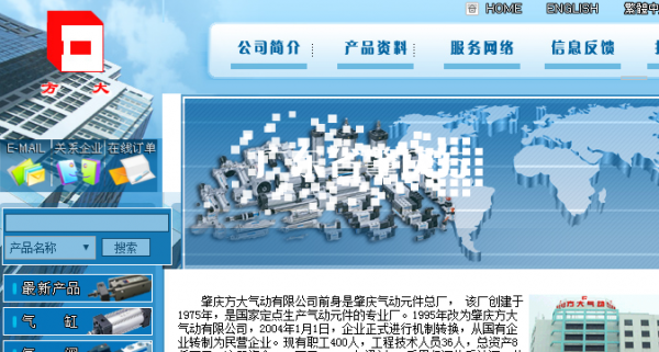 肇慶方大氣動有限公司前身是肇慶氣動元件總廠, 該廠創(chuàng)建于1975年,是國家定點(diǎn)生產(chǎn)氣動元件的專業(yè)廠。1995年改為肇慶方大氣動有限公司,2004年1月1日,企業(yè)正式進(jìn)行機(jī)制轉(zhuǎn)換,從國有企業(yè)轉(zhuǎn)制為民營企業(yè)。現(xiàn)有職工400人,工程技術(shù)人員36人,總資產(chǎn)8仟萬元,注冊資金5610萬元。1999年通過ISO質(zhì)量保證體系認(rèn)證,公司主營氣缸、氣閥、氣源三大件及成套設(shè)備。產(chǎn)品多次被評為“省優(yōu)”、“部優(yōu)”、“名優(yōu)”產(chǎn)品,其中,“方大”牌氣動元件被評為廣東省名牌產(chǎn)品。方大公司是全國氣動行業(yè)中產(chǎn)品品種最齊全、規(guī)格最多的氣動元件專業(yè)生產(chǎn)公司,多年來公司各項(xiàng)主要經(jīng)濟(jì)指標(biāo)在國內(nèi)氣動行業(yè)中處于前列,在國內(nèi)具有重要的影響力。