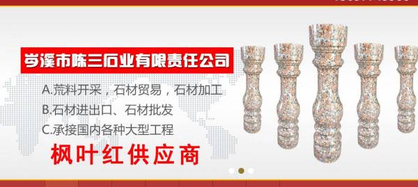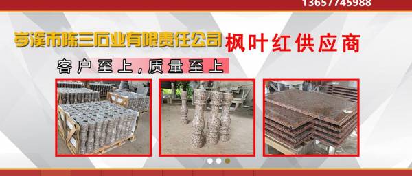 公司專(zhuān)業(yè)生產(chǎn)及開(kāi)采廣西楓葉紅、廣西三堡紅、廣西浪花白、廣西海棠紅、廣西粉紅麻、廣西芝麻黑等優(yōu)質(zhì)花崗巖,擁有多名優(yōu)秀專(zhuān)業(yè)技術(shù)人員,是專(zhuān)業(yè)的楓葉紅供應(yīng)商。主營(yíng):荒料,高檔別墅,星級(jí)酒店,歐式工程石材,外墻干擋板,光面,荔枝面,火燒面。
