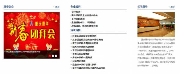 重慶康華會計師事務所有限責任公司選用我司企業(yè)會計服務行業(yè)的網(wǎng)站優(yōu)化產(chǎn)品,其SEO關鍵詞有 重慶康華會計師事務所有限責任公司。其特點是用很合適的展示方式、展示效果、站點框架,把客戶及其用戶很關心的問題突出表現(xiàn);并以簡潔明朗的設計風格,清晰展現(xiàn)公司水平實力,確保一秒抓住目標用戶眼球,給用戶留下良好的第一印象。重慶康華會計師事務所有限責任公司成立于1999年,是經(jīng)渝中區(qū)市場監(jiān)督管理局審核的有資質(zhì)的公司,其統(tǒng)一社會信用代碼: 91500103203294950Y 。公司地址:重慶市渝北區(qū)財富大道一號重慶財富金融中心39層(會計),38層(評估、稅務),37層(工程)。