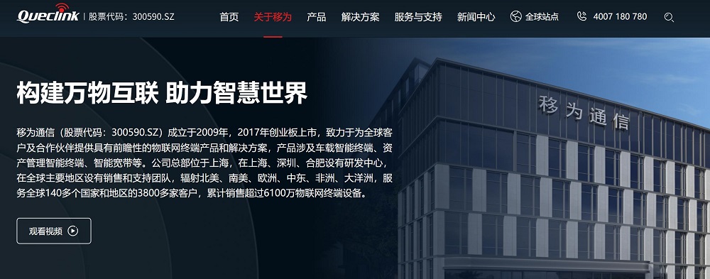 移為通信(股票代碼:300590.SZ)成立于2009年,2017年創(chuàng)業(yè)板上市,致力于為全球客戶及合作伙伴提供具有前瞻性的物聯(lián)網(wǎng)終端產(chǎn)品和解決方案,產(chǎn)品涉及車載智能終端、資產(chǎn)管理智能終端、智能寬帶等。公司總部位于上海,在上海、深圳、合肥設(shè)有研發(fā)中心