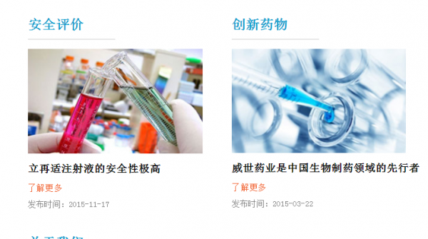 威*藥業(yè)是一家以全球醫(yī)藥市場需求為主導、以創(chuàng)新研究為基礎、具有重大獲利潛力的生物醫(yī)藥高科技企業(yè),致力于具有自主知識產(chǎn)權的原創(chuàng)新藥開發(fā)研究。威世藥業(yè)在理論創(chuàng)新的基礎之上,成功自主研制開發(fā)出具有全新鎮(zhèn)痛機理的獨家專原創(chuàng)新藥利生物藥品“痘苗病毒致炎兔皮提取物”,商品名:立再適,其藥理作用機制與傳統(tǒng)消炎鎮(zhèn)痛藥不同,能和阿片受體結合而發(fā)揮比嗎啡更強更持久的鎮(zhèn)痛效果,而無嗎啡所產(chǎn)生的嗜睡、心肺抑制、成癮等副作用,為一種新型安全強效的鎮(zhèn)痛藥物。