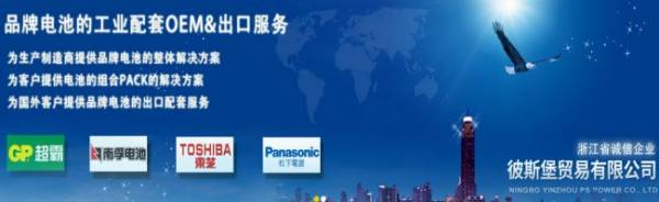 寧波市鄞州彼斯堡貿(mào)易有限公司成立于2006年11月,做專業(yè)品牌電池類代理商,并被評為“2008年度寧波市誠信企業(yè)”、”2014年度浙江省誠信企業(yè)”“優(yōu)秀代理商”。 公司經(jīng)營品牌有:南孚電池【一級總代理】【配套OEM產(chǎn)品華東、華北總代理】、GP超霸民用品【一級總代理】、東芝民用品【一級總代理】、松下【一級總代理】、德國漢高【一級總代理】、歐司朗照明【一級總代理】、GP&東芝的工配品【中國大陸區(qū)總代理】、ROSS、金霸王、勁量等品牌。 做為阿里巴巴金牌供應(yīng)商,服務(wù)于樂購、歐尚、易買得、三江購物俱樂部、華潤萬家、加貝購物俱樂部、家電賣場、批發(fā)市場、數(shù)碼渠道供應(yīng)產(chǎn)品及售后服務(wù)。并為全國各地的工廠、企業(yè)提供各類工業(yè)電池的配套服務(wù)和一些電源的解決方案。 公司以誠信第一、品牌第一、質(zhì)量第一、客戶第一為原則。