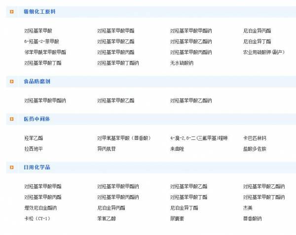 浙江圣效化學(xué)品有限公司是國家級高新技術(shù)企業(yè),是對羥基苯甲酸、6-羥基-2-萘甲酸及尼泊金酯類產(chǎn)品的全球規(guī)模生產(chǎn)企業(yè),是以日本配方為基礎(chǔ)的增效尼泊金酯鈉、尼泊金異丙酯、對羥基苯甲酸異丁酯的專門生產(chǎn)商。公司還生產(chǎn)醫(yī)藥中間體對甲氧基苯甲酸(茴香酸)、卡巴匹林鈣、拉西地平、異丙肌苷以及日用化學(xué)品原料杰美、卡松、苯氧基乙醇等產(chǎn)品。