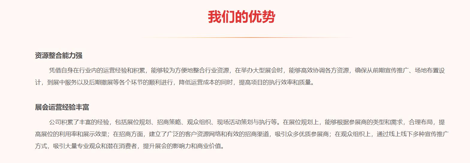 憑借出色的服務(wù)品質(zhì)和良好的市場(chǎng)口碑,公司在短短幾年間便取得了顯著的成績(jī),與眾多國(guó)內(nèi)外知名廠家建立了長(zhǎng)期穩(wěn)定的合作關(guān)系,業(yè)務(wù)范圍不斷拓展,在行業(yè)內(nèi)的知名度和影響力日益提升。未來(lái),臨沂喜滿(mǎn)滿(mǎn)國(guó)際會(huì)展有限公司將繼續(xù)深耕會(huì)展領(lǐng)域,不斷創(chuàng)新發(fā)展,努力為客戶(hù)創(chuàng)造更多價(jià)值,為會(huì)展行業(yè)的發(fā)展貢獻(xiàn)更大的力量。