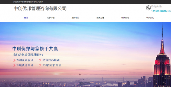 北京中創(chuàng)優(yōu)邦管理咨詢有限公司(簡稱中創(chuàng)優(yōu)邦),是一家專注于為中小企業(yè)提供專業(yè)管理咨詢與ISO認證培訓服務的企業(yè)管理咨詢機構。其總部位于北京,專業(yè)為企業(yè)提供ISO9001、ISO14001、OHSAS18000、ISO/TS16949、ISO27001、ISO20000、ISO13485、ISO22000(HACCP)等國際管理體系認證咨詢。截止到2016年底,已在機械設備、電子電氣、軌道交通、國家電網、研發(fā)、銷售、工程施工、物業(yè)服務、高新科技、政府單位等10多個重點行業(yè)、上千家企業(yè)提供了優(yōu)質的管理咨詢服務,積累了豐富的多行業(yè)、多領域、不同體制的企業(yè)咨詢項目經驗。目前,公司在北京、河北、山西、內蒙、山東、天津設有分公司。
